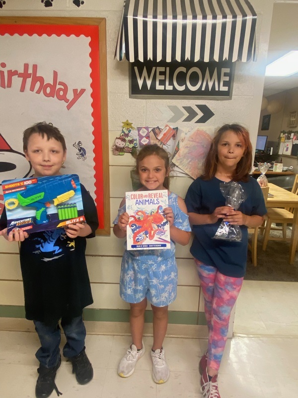 Congratulations to Kennedy Feldbaumer, Kami Stewart, Kolten Patterson, Lane Green, Harper King, Thomas Haney, Swayze Pulliam, Rosie West, Axen Miller, Brooklynne Griffith, Kenya Crocker, Davis Lovell, Shelby Blanks, Haley Halferty, Ryleigh Fisher, Max Henry, Lyla Routh, Percy Henry, Gracie Baker, Hadley Cooper, Raylee Mullins, Kimmy Kapp, Landon Baker, Koda Early, Keagan Eubanks, Mackenzie Geyer, Nathan Myers, Joseph Mounce, Makenzie Redman, Korbin Shomaker! They were each drawn for a prize of choice as a result of their hard work during MAP/EOC testing!