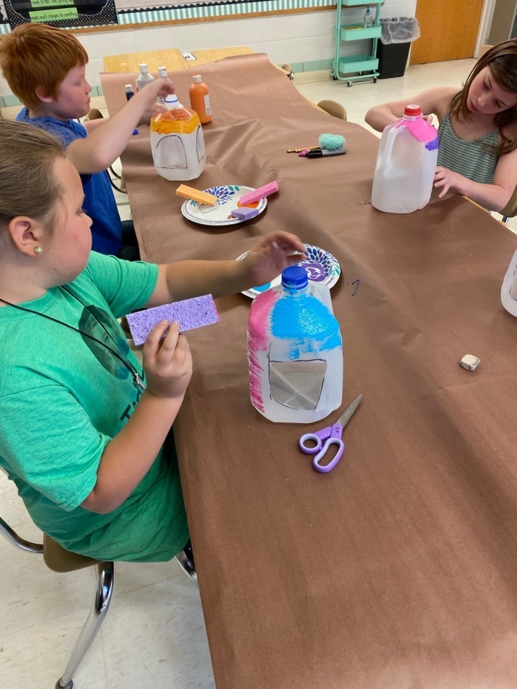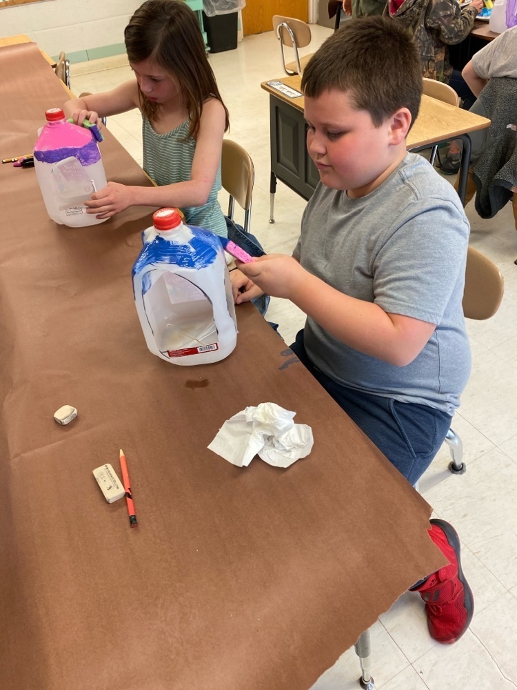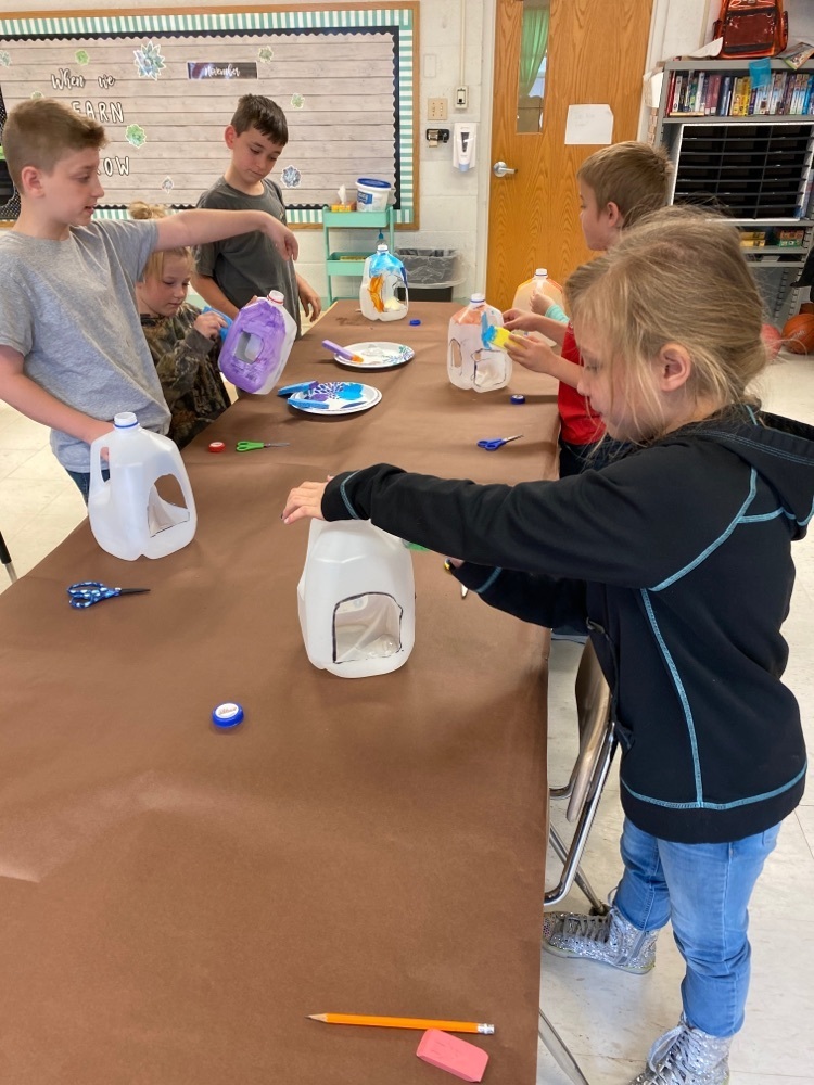 Mrs. Clabaugh’s class is celebrating earth day by using recycled materials to make a bird house!