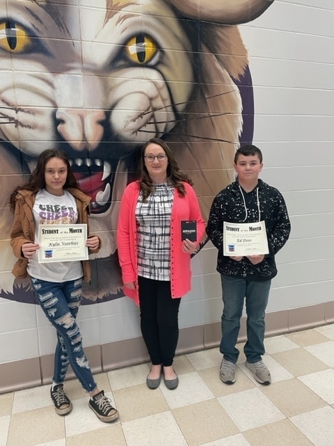 The Shelter Insurance Students of the Month for November were Ed Doss (middle school) and Kylie Voorhies (high school). These students were nominated by their teachers for showing the character trait of perseverance.