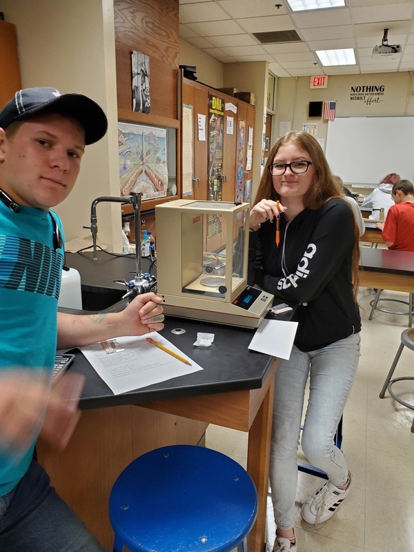 Biology I students learning about experimental design as they calculate the % sugar by mass in various brands of gum.